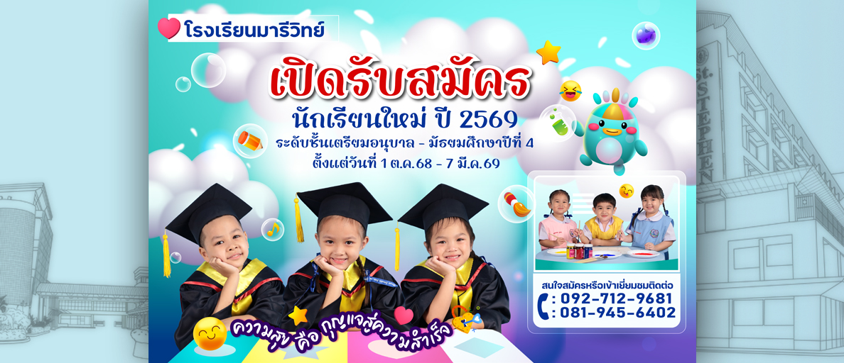 ประกาศรายชื่อผู้ผ่านการสอบคัดเลือกเพื่อชิงทุนการศึกษา ประจำปีการศึกษา 2568 Maryvit School Uncategorized 28/04/202506/09/2025 คลิกเพื่อดูรายชื่อ
